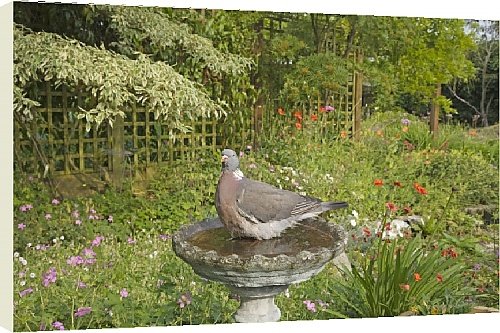 20 Canvas Print, White Sides. , Woodpigeon - in garden bird bath. COS-2879 Woodpigeon - in garden bird bath Essex - UK Columba palumbus Bill Coster Please note that prints are for personal display purposes only and may not be reproduced in any way. contact details tel and 44 (0) 20 8672 2067 . Chosen by Ardea. Ready to hang, 51cm along the longest edge (other side scaled to fit). High quality 300gsm canvas with Fujifilm water based pigment